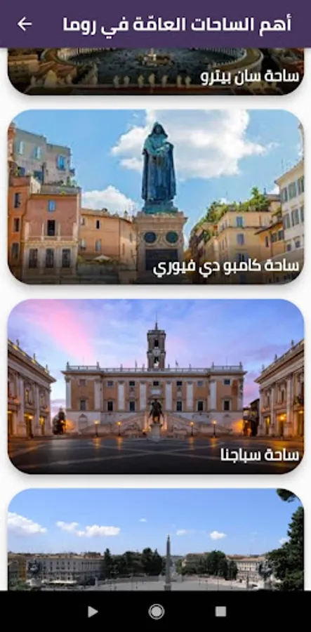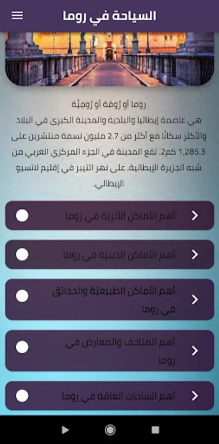 Tourism application in Rome: It is a tourist guide that makes it easier for the tourist to determine his destination, including the most important places that can be visited during the tourism period.