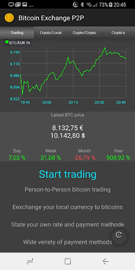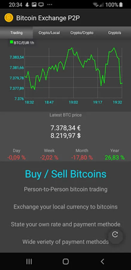 Welcome to our App, we use our partner platform to buy or sell Bitcoins .
