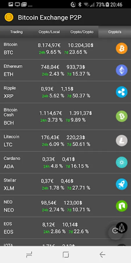 You can see the list of over 100 Cryptocurrencies with their latest price.