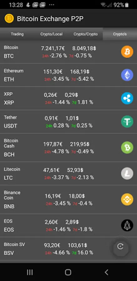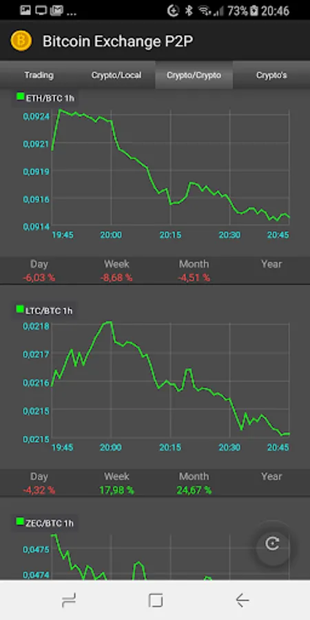 The app allows you to track the Bitcoin price in USD$ and in your own currency.
