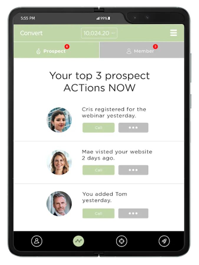 We also have member actions prompting you to follow up with team members, customers, and to share specials with others.
