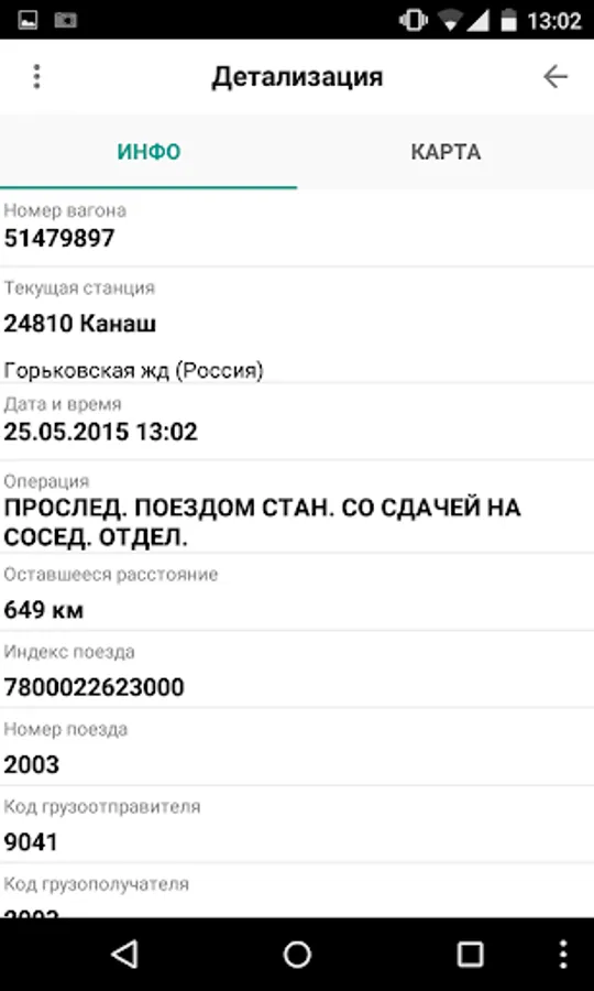 A mobile client for the online search service of wagons and containers from "Alta-Soft".
