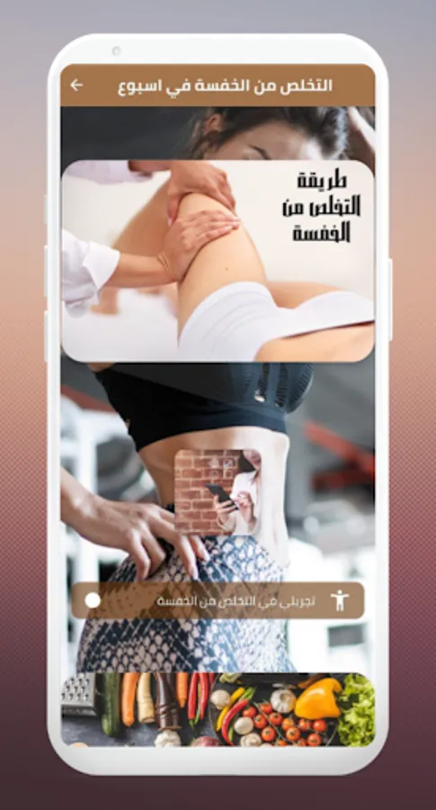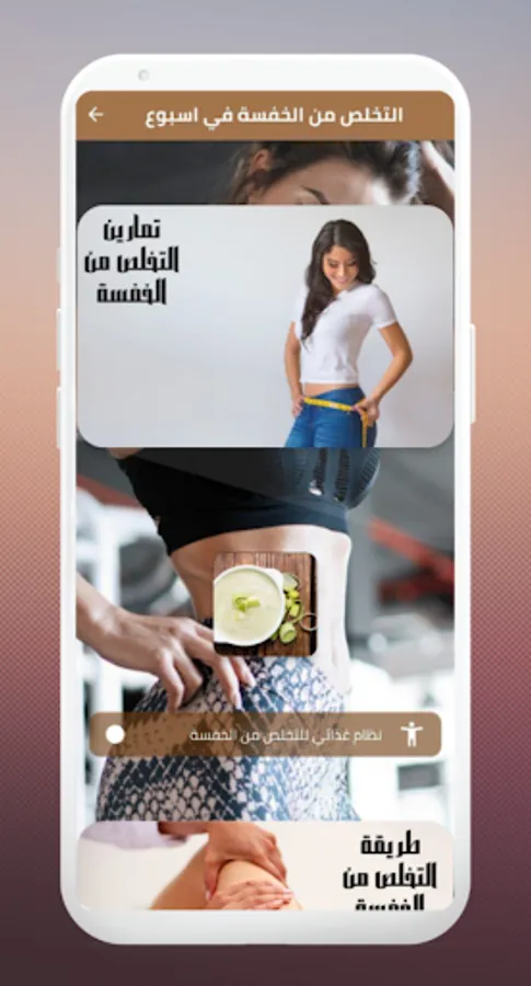 We offer you the application to get rid of the limp in a week that provides in its content the best effective and distinctive ways and exercises to get rid of the limp in the fastest time and make your body more beautiful. And a diet to get rid of the luffing, the way to get rid of the luffing, my experience in getting rid of the luffing, recipes for getting rid of the luffing and getting rid of the luffing of the butt, and exercises to get rid of the luffing with pictures, getting rid of the luffing fat, getting rid of the luffing with herbs and much more in the application of getting rid of the luffing Khvvh in a wonderful week. We advise you to download the application to get rid of the slip in a week now and do not hesitate...