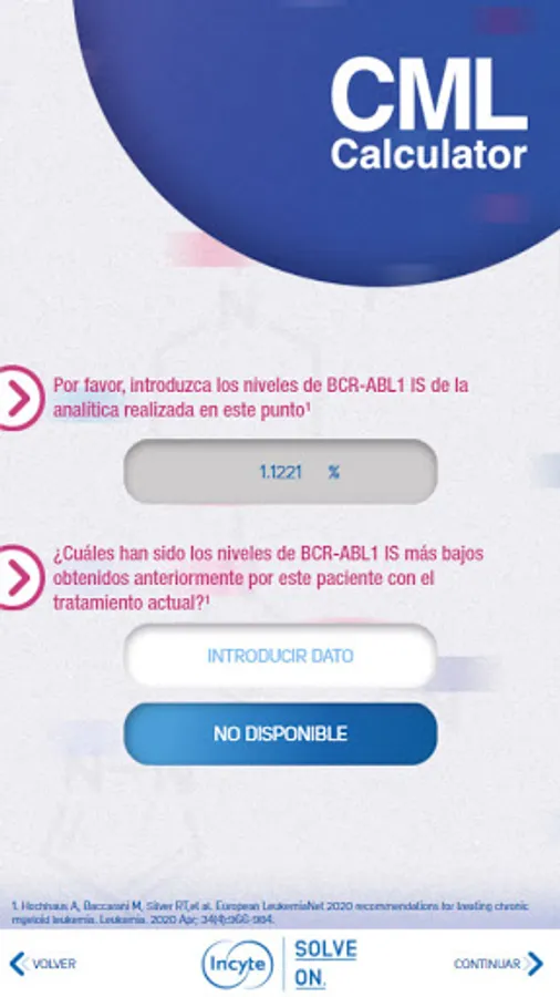 CML Calculator is an app designed by Incyte Biosciences UK Ltd for helps UK and Ireland Healthcare Professionals. This application is based on the European LeukemiaNet recommendations1 and aims to bring the group's recommendations in a practical way to help you determine whether CML patients are in optimal response, alert or failure.