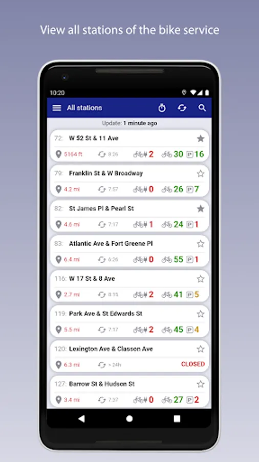 Unofficial app to view detailed information about the stations of the Citi Bike rental service in New York.
