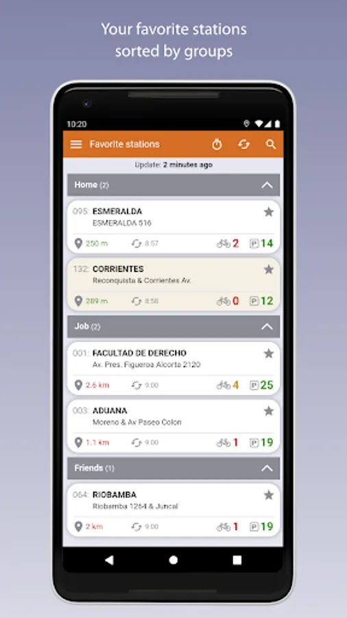 - List of favorite stations categorized by groups (home, work, friends or general).