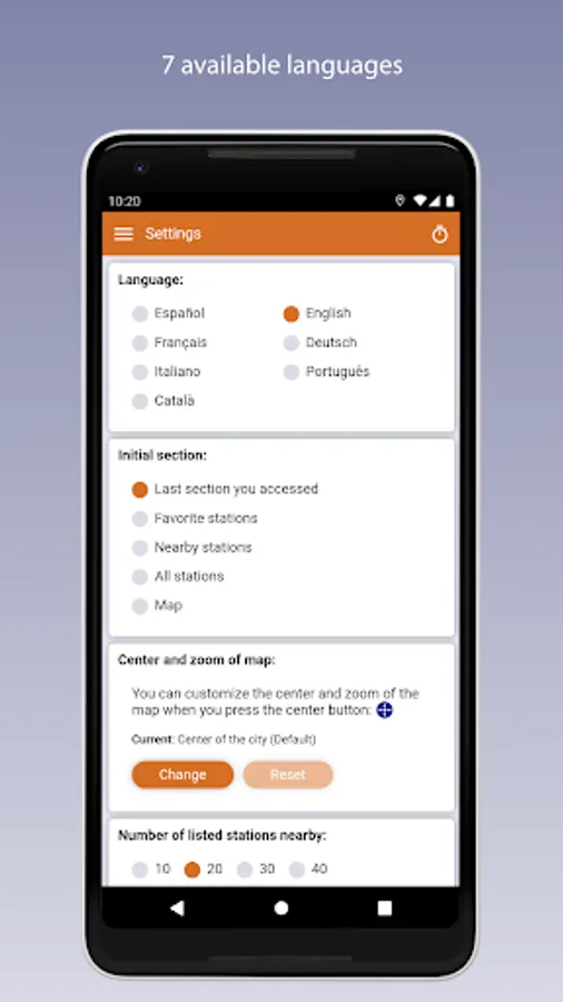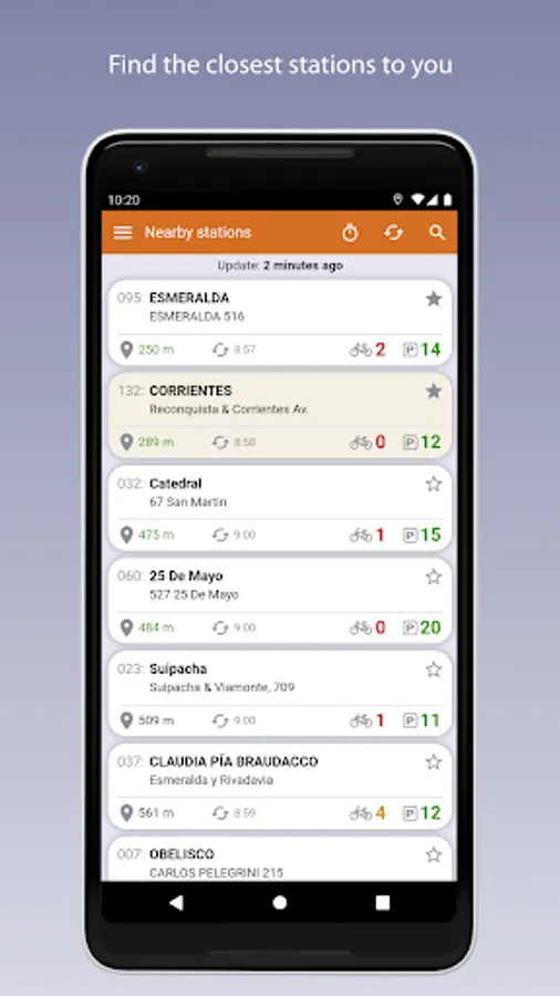 - List of stations closest to you according to your current position.