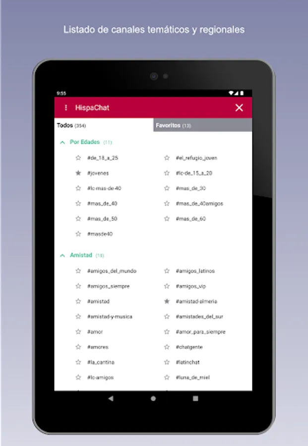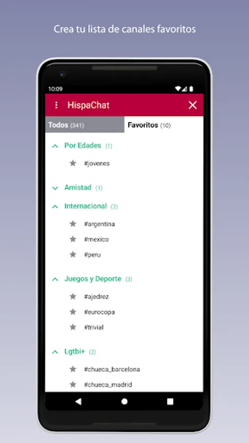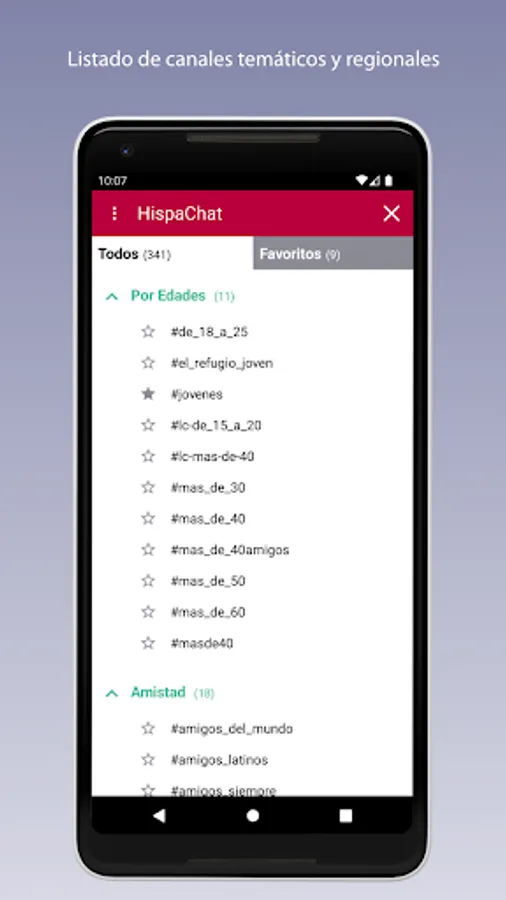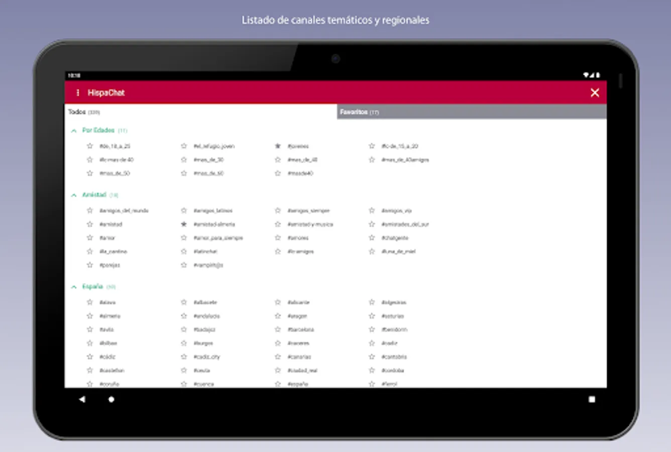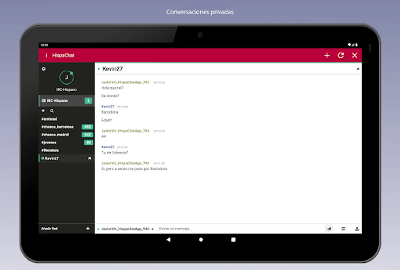 With HispaChat you can talk to people from any Spanish-speaking region. There are many channels or rooms ordered by region, age, theme (computing, hobbies, friendship, LGTB, gay, ...).