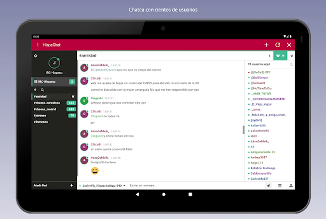 Free application where you can access the Hispanic IRC chat with a multitude of channels in Spanish. Meet people with your same concerns. Ask questions about any topic that interests you.