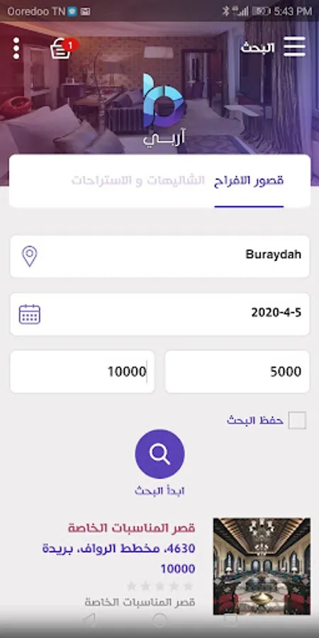 Arpi is a platform for booking palaces and chalets with a search engine that enables you to choose and define the level and ceiling prices according to the dates you want with the ability to choose and request your need for additions and options through the application.