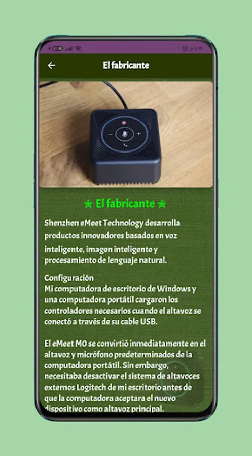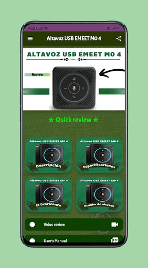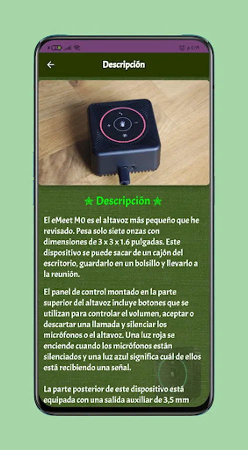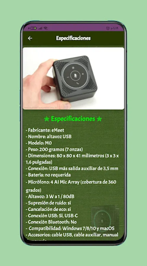The application includes a full review and experience of the Altavoz USB EMEET M0 4 and a guide to use the device, where you can through the Altavoz USB EMEET M0 4 application know all its specifications and features, including: