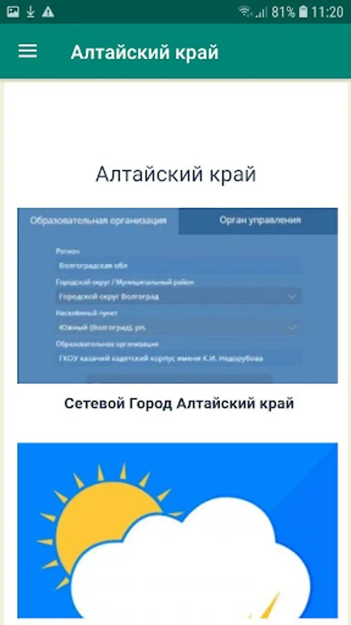 - Entrance to the Network City of Altai Territory. The application is primarily intended for parents of students. Quick access to the education system is always at hand.