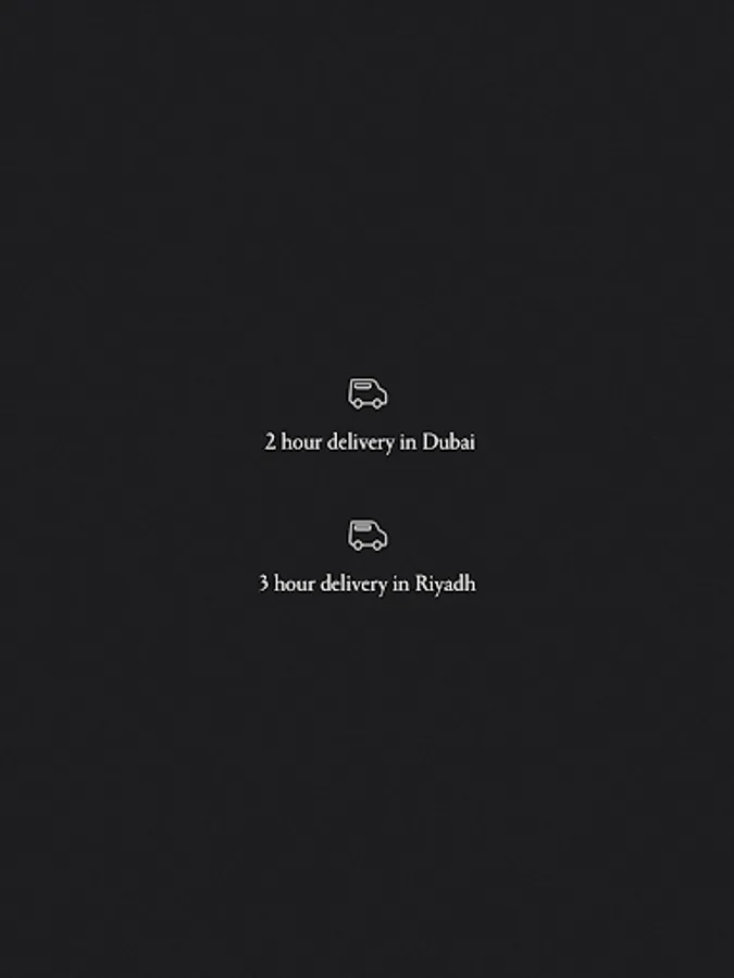 2-hour delivery in Dubai & 3- hour delivery in Riyadh.