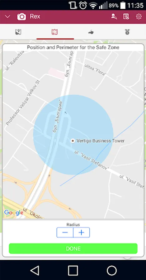 • Configure Safe Zones as locations and get notified when the pet leaves the Safe Zone.