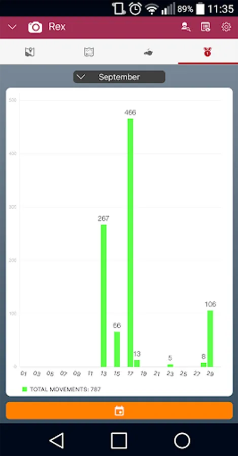 Activity history: Stats by month/day/hour about the registered moves of your pet.