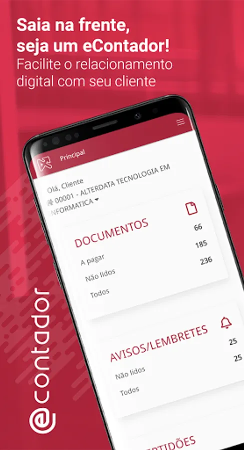 The application is intended for Alterdata's Pack line customers who use the eContador Cloud solution. If your accountant does not use Alterdata's Pack line products, please recommend that they contact us via e-mail comercial@alterdata.com.br or telephone 0800 704 1418.