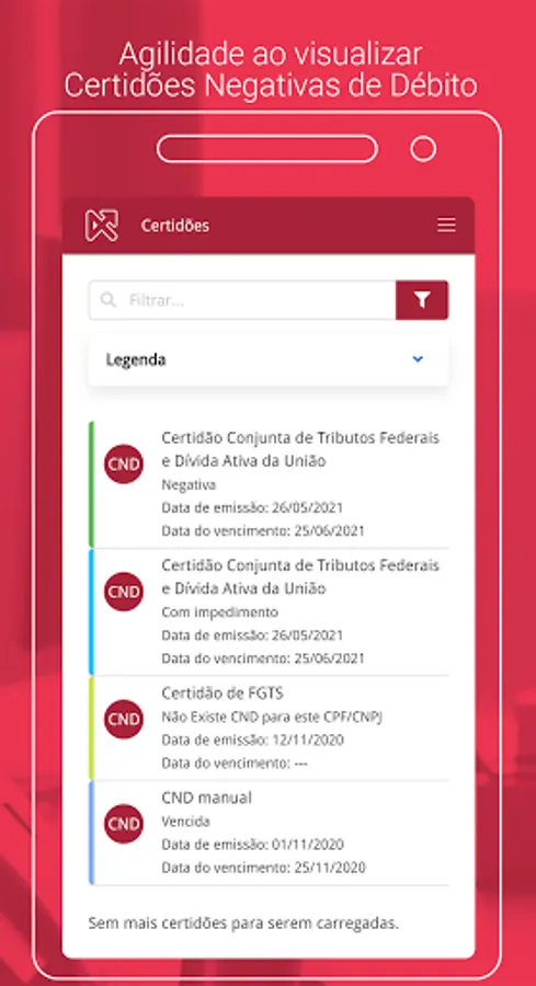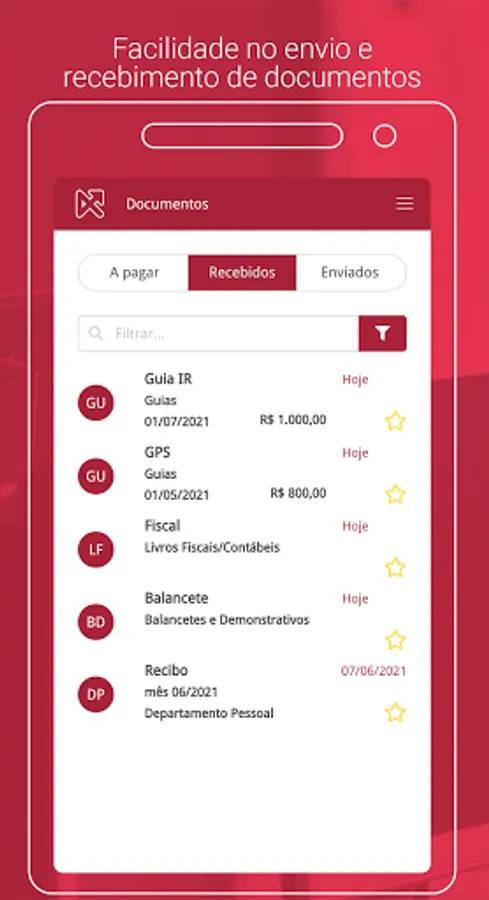 With a simple interface and intuitive features, eContador makes available to its customers, the visualization of their documents and the possibility of considering them as paid and favorites, with agility and simplicity.