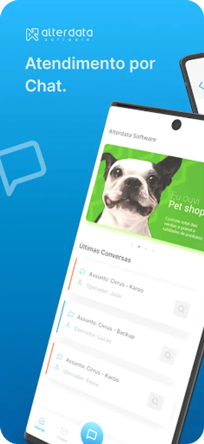 View your latest conversations or start a new one quickly with one of the Alterdata support agents.
