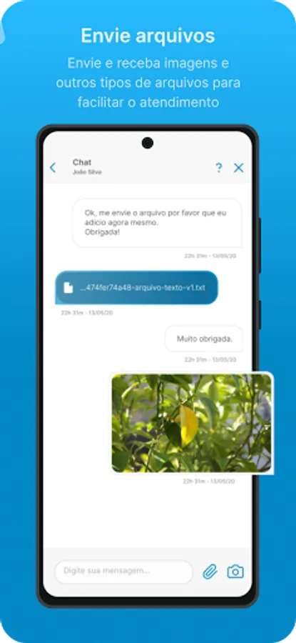 When starting the conversation you can also send images and other file types. Even take a picture with the camera.