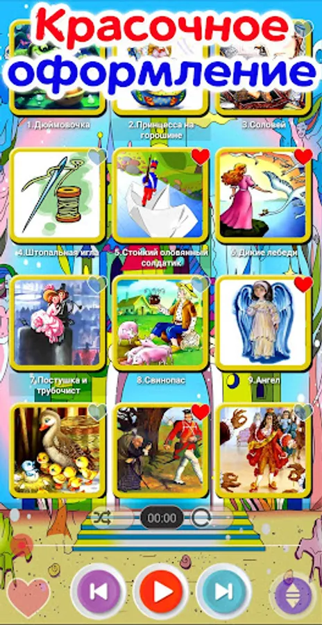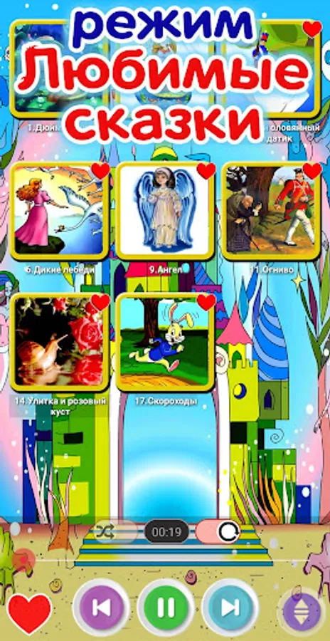 👉 handy list ❤ "favorite audio tales". You can add your favorite fairy tales to it and listen to them for free and without the Internet for your pleasure;