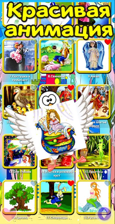 😄 pleasant animation of playing and the appearance of icons of fairy tales for children;