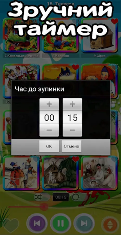 Audio stories for kids are not just so read - they are told in a bright, figurative, emotional way. Even with music. So I think this collection can become a favorite of your children for weeks or even months. A time timer is also provided for automatically stopping the playback of children's audio builds.