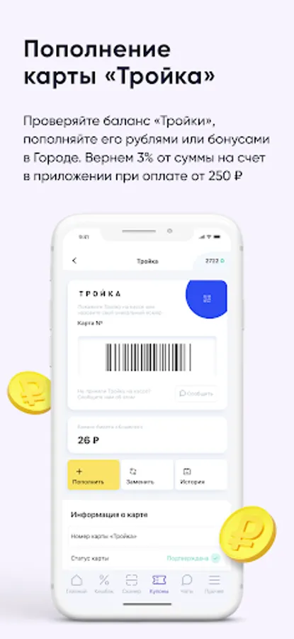 While you were reading this text, we have already credited you with bonuses for topping up your Troika card over the past six months. Link "Troika" in your profile and check it out for yourself! By the way, users from other cities can also become members of the loyalty program.