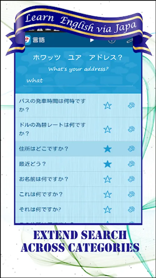 Get your daily English lessons with Learn English via Japanese that will give you everything to speak and write in English in everyday life as you will have the most used words and English phrases across 33 categories on your phone. You can be an absolute beginner starting from scratch, an intermediate student or a confident native speaker of the language of English, rest assured you will find something new to learn.