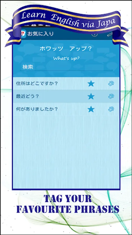* Tag your favourite phrases for quick reference and refresh your English knowledge on the go