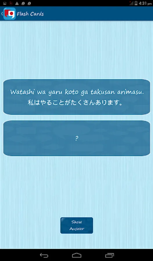 Build knowledge from scratch or refresh your Japanese grammar. The app easily enables you to improve your Japanese vocabulary and pronunciation, remember new words using Japanese Flashcards, learn the alphabet in Japanese or test your Japanese language knowledge with our fun Japanese quiz. Used as an English to Japanese dictionary or an English to Japanese learning app, "Learn Japanese Quickly" has several handy features that helps you with effective language educational learning.