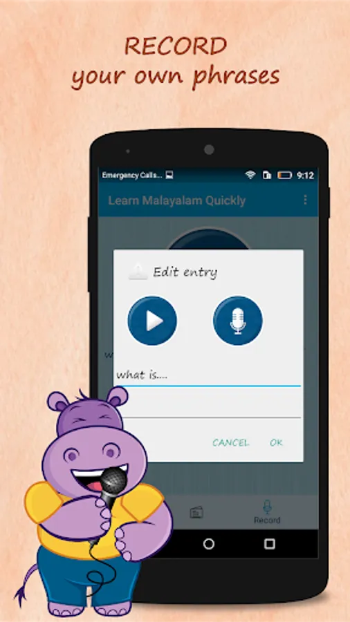 The app turns learning into a fun-filled experience. Learn Malayalam through English using quizzes, flash cards and by recording your own phrases. You will be able to learn to speak Malayalam easily and fast at home, while being entertained at the same time. Not only that you’ll learn to speak Malayalam, but you will learn spoken/conversational Malayalam as well!