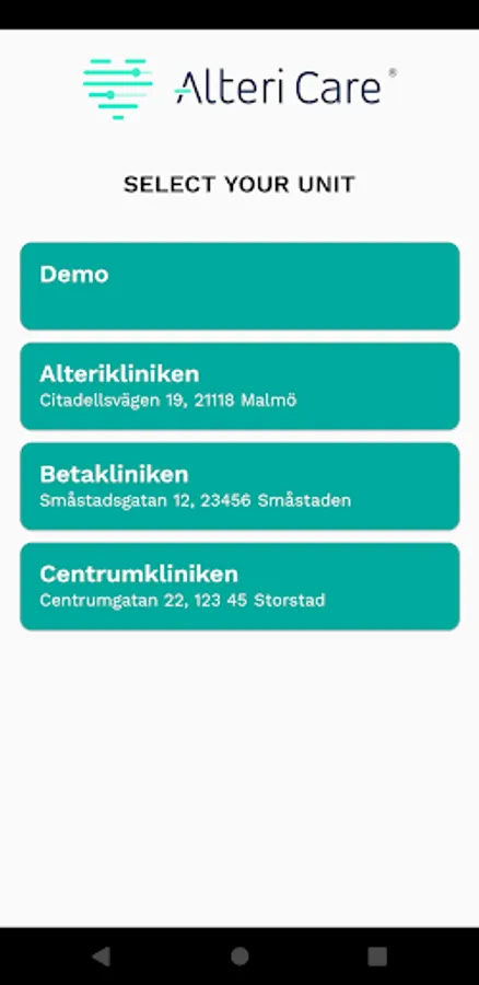 This is Alteri Care's demo to show our customers that Alteri Care's solution as an app.