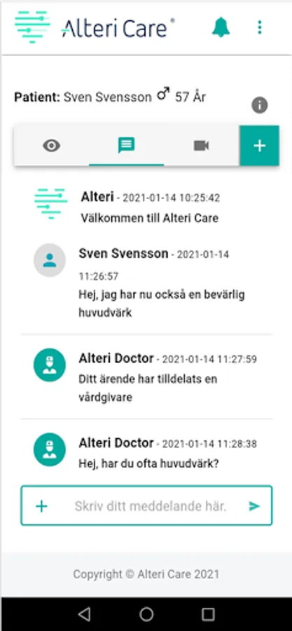 The Alteri Care app gives you the opportunity to securely communicate with patients, for example via chat or video.