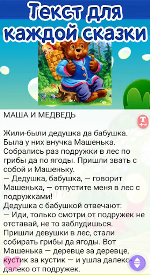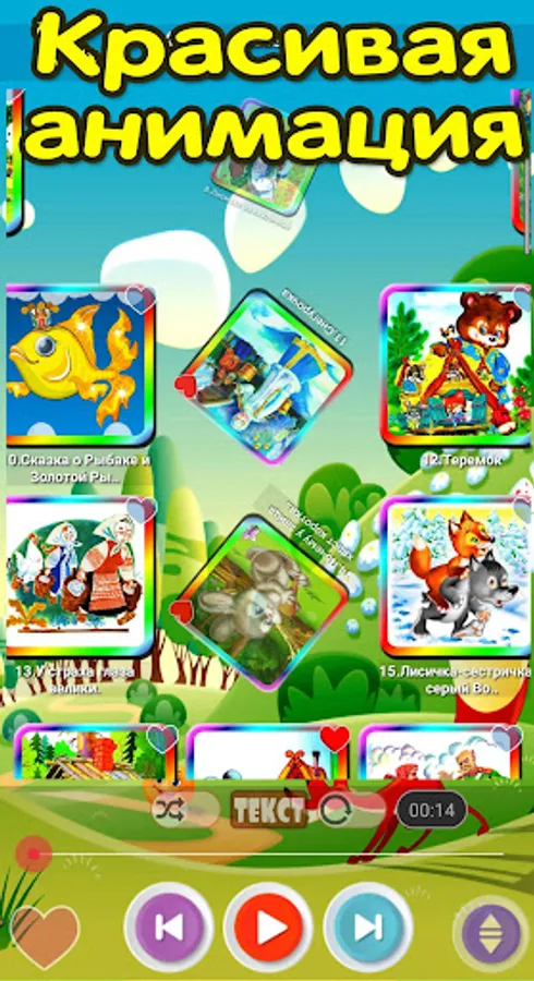 - bewitching beautiful animations will delight you every time you scroll through the list of fairy tales.