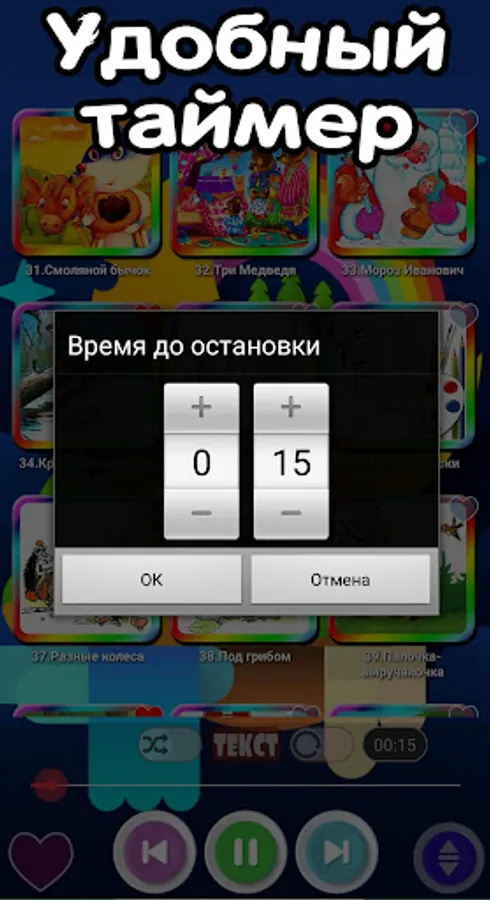 To listen to fairy tales when the screen is off, you need to minimize the working application (middle button of the Home phone) and then turn off the screen (Power button of the phone)