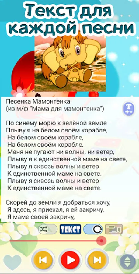 👉 Russian lyrics added for each audio track 📕. It is very convenient to learn the words of songs with the baby or sing songs together to the music.