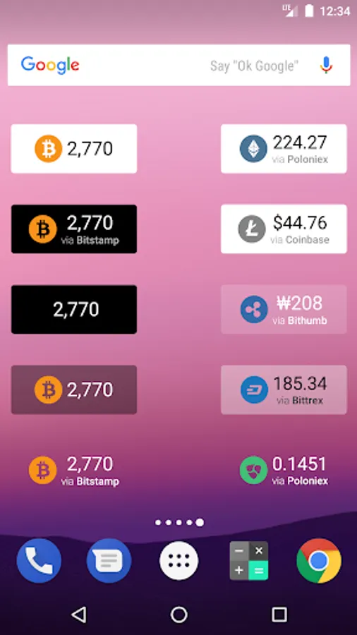 * Crypto Widgets is a widget-only app. As such, no launcher icon will appear in your app drawer after installation. Crypto Widgets will only appear in your widget selection list.