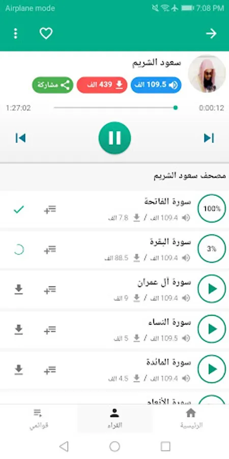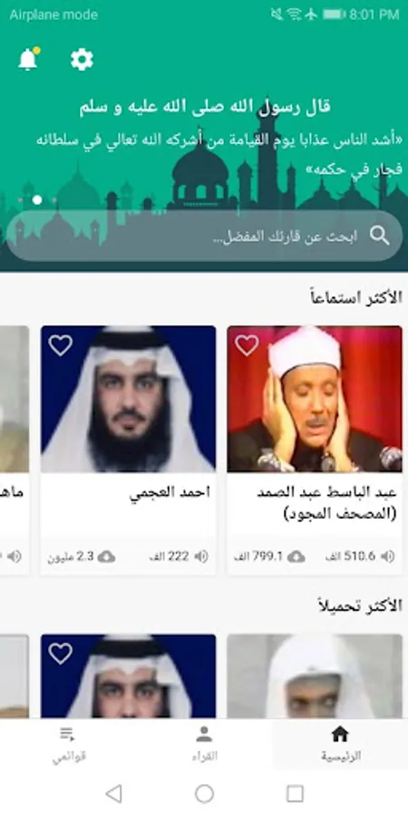 An easy-to-use application that contains a large number of readers of the Islamic world and includes many features. The application provides the ability to listen and download all the Holy Quran wall with high quality and quick links. It also provides a service to create a list of chapters to be listened to in a voice more than one reader, as the application runs recitations automatically and sequentially, and it is possible to create more than one list.