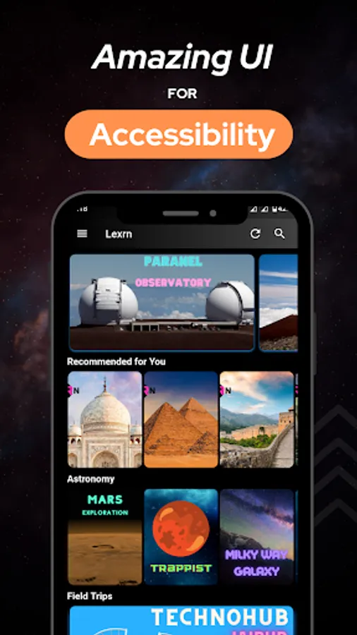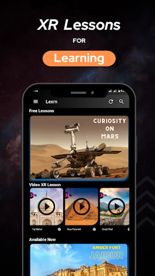 Lexrn is an AR/VR based assisted learning platform. Our app provides VR field trips to Mars , Jurassic Era, Taj Mahal, and more with quiz and infographics.