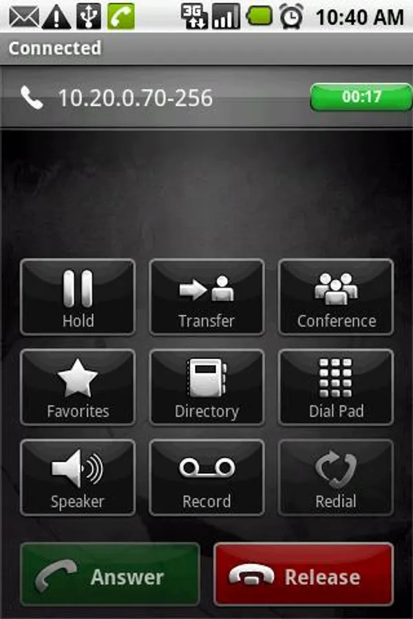The MaxMobile application, installed on an Android mobile phone, extends your enterprise desktop phone abilities, allowing you to access, configure, and perform most of your MAXCS PBX functions directly from the MaxMobile GUI. Features include call forwarding, call transfers, extension monitoring, conferencing, contact lookup, and dialing. You can call company extensions (both inside and remote extensions) just by dialing the extension number. Use MaxMobile to present your office Caller ID instead of your cell phone number. While MaxMobile is active, calls to your office extension will seamlessly route to your Android mobile phone.