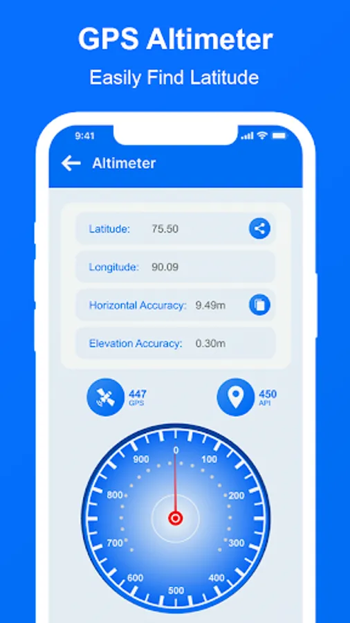 The Gps Altimeter app has lots of unique features. Save history of altitude. You can measure elevation from ground level. Localization coordinates latitude and longitude.