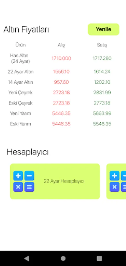 Gold has held the most special and respected place among precious metals for centuries. The current prices of precious metals, on the other hand, may change continuously due to economic fluctuations. In this volatility, it is extremely important to have the most reliable and close price information for jewelers and those interested in gold trading. At this point, we present you our application called Calculate Gold!