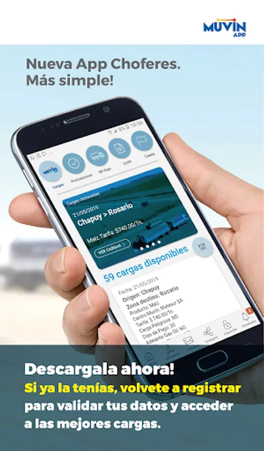 MUVIN APP is the online agro-industrial logistics platform that connects cargo givers with free drivers ready to take a trip, based on georeferencing.