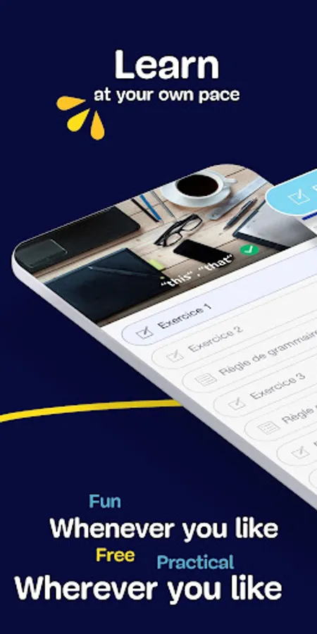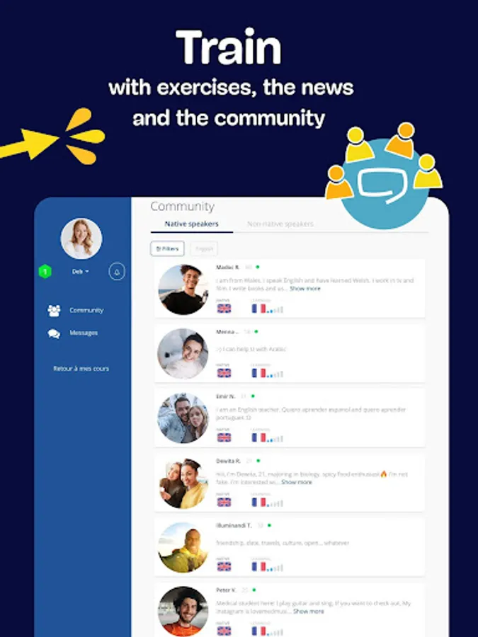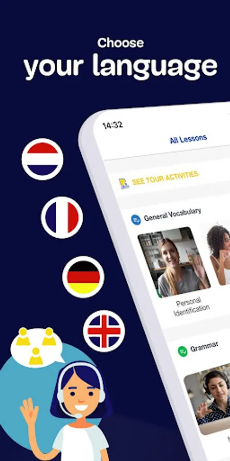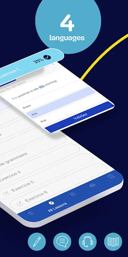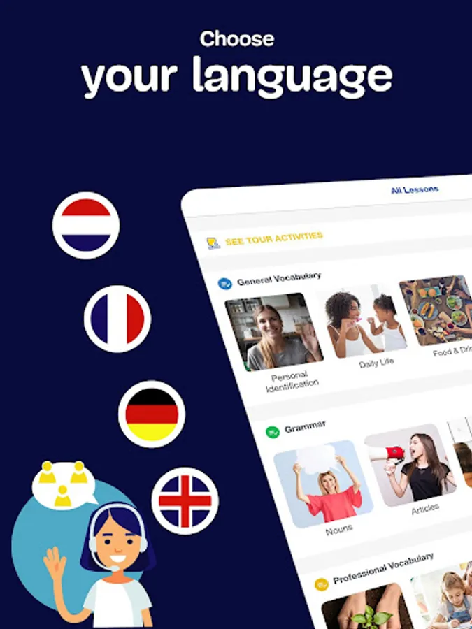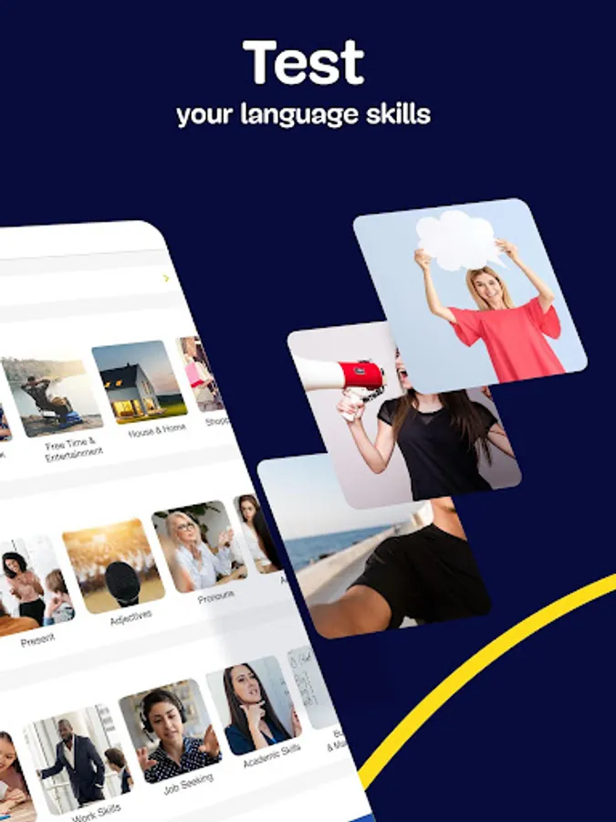 * Test and improve your level in 4 languages: English, Dutch, German and French.