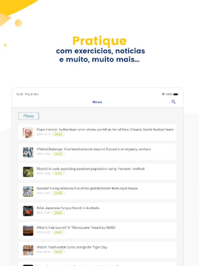 The Parnaiba Idiomas app allows you to test and develop your language levels. It's simple, practical and, of course, fun!