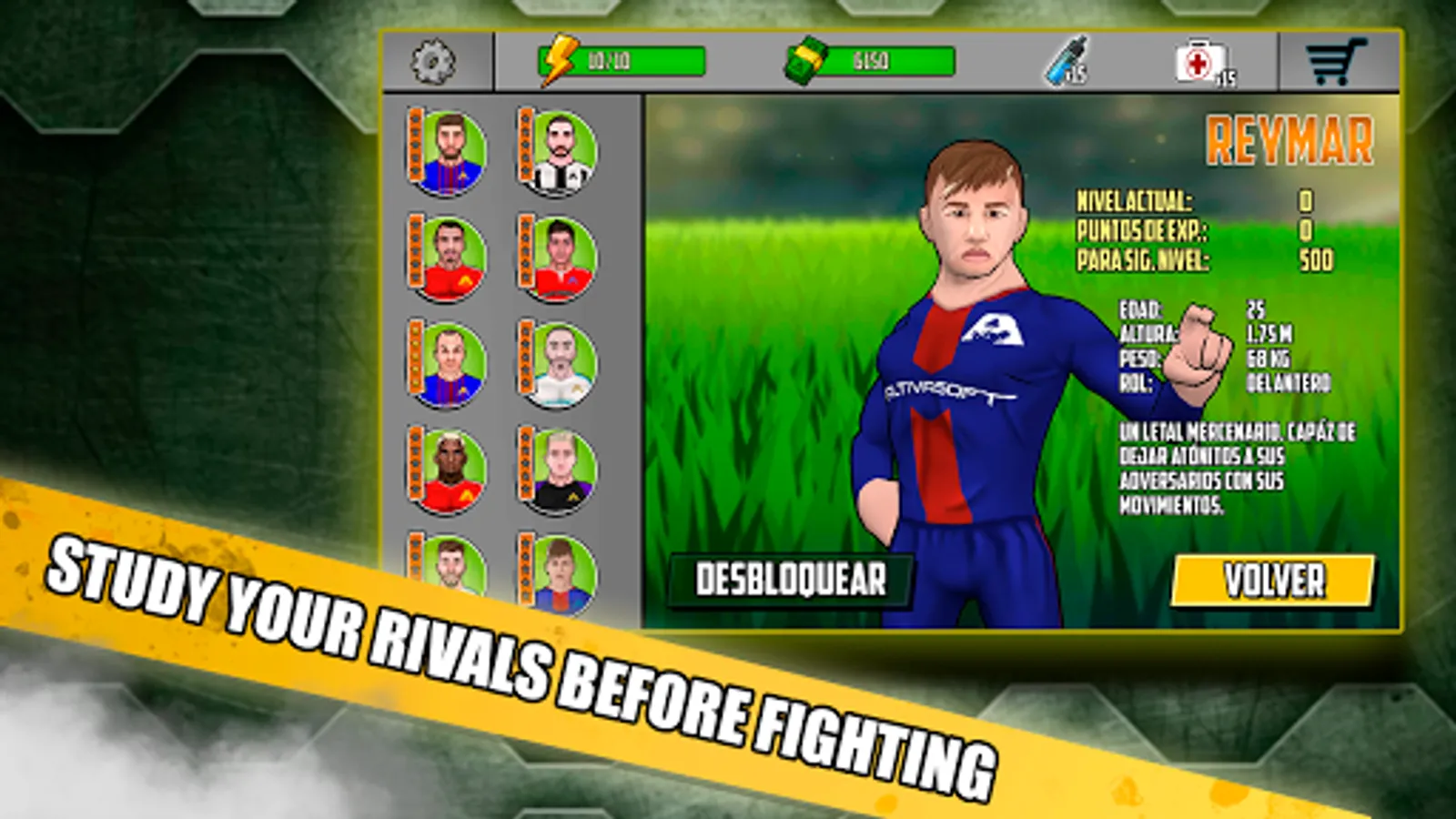 Enjoy the unique and best of free 3D fighting games and all the tension of street fights, awaken the wildest side of the players and defend the honor of your best warrior team in this fighting league, this is the true champion of the football player fight. Compete against combos of free style masters of kung fu, mma, karate, fight, boxing, to entertained your self an epic mortal combat in which you can choose many players.