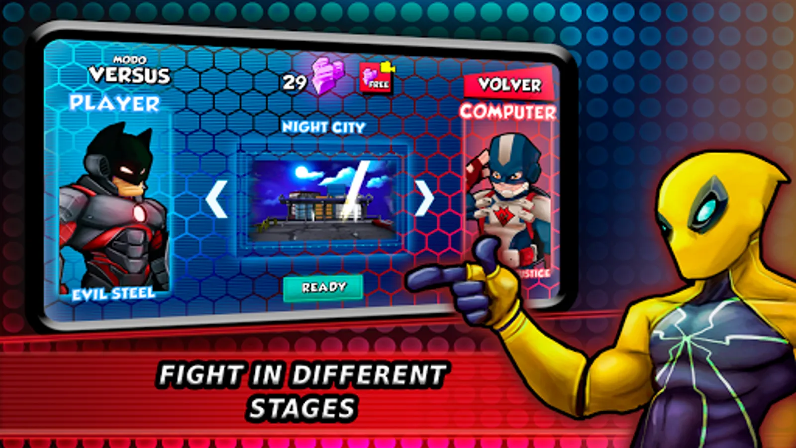 Be the best superhero and fight totally FREE, collect all the best superheroes cards and conquer the universe.Train your superheroes in different street fighting techniques in a training mode, so you'll learn to punch or kick, remember that survival is not guaranteed.