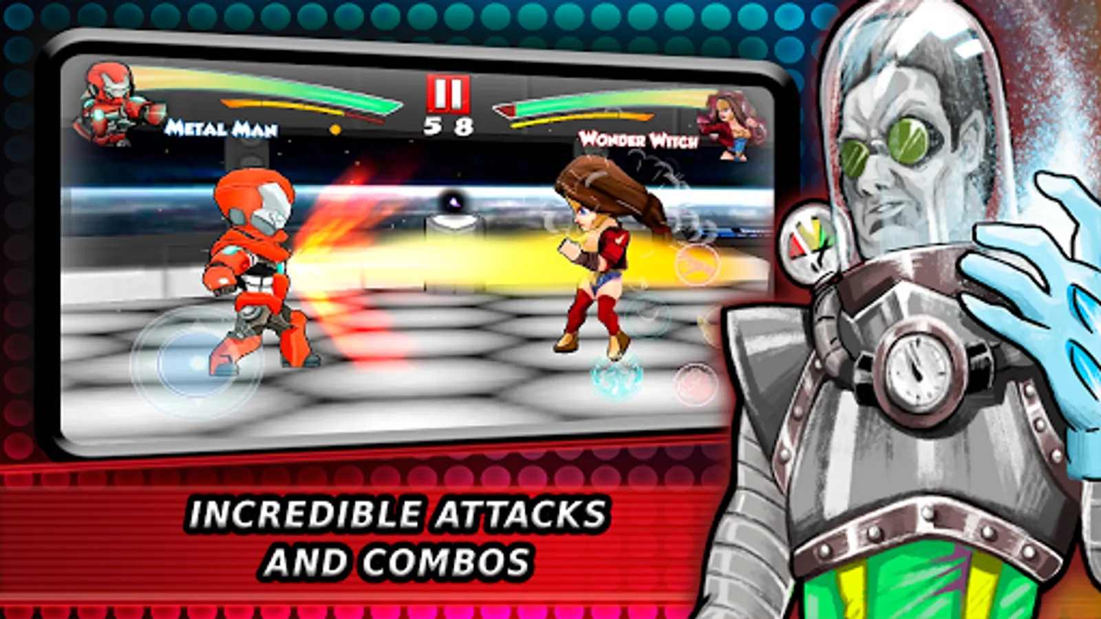 Feel all the power of superhero in yours hands, make kicks and punches combos, charge the energy and realize the ultimate fighting skill to destroy the villain.