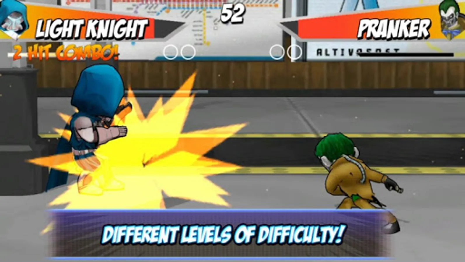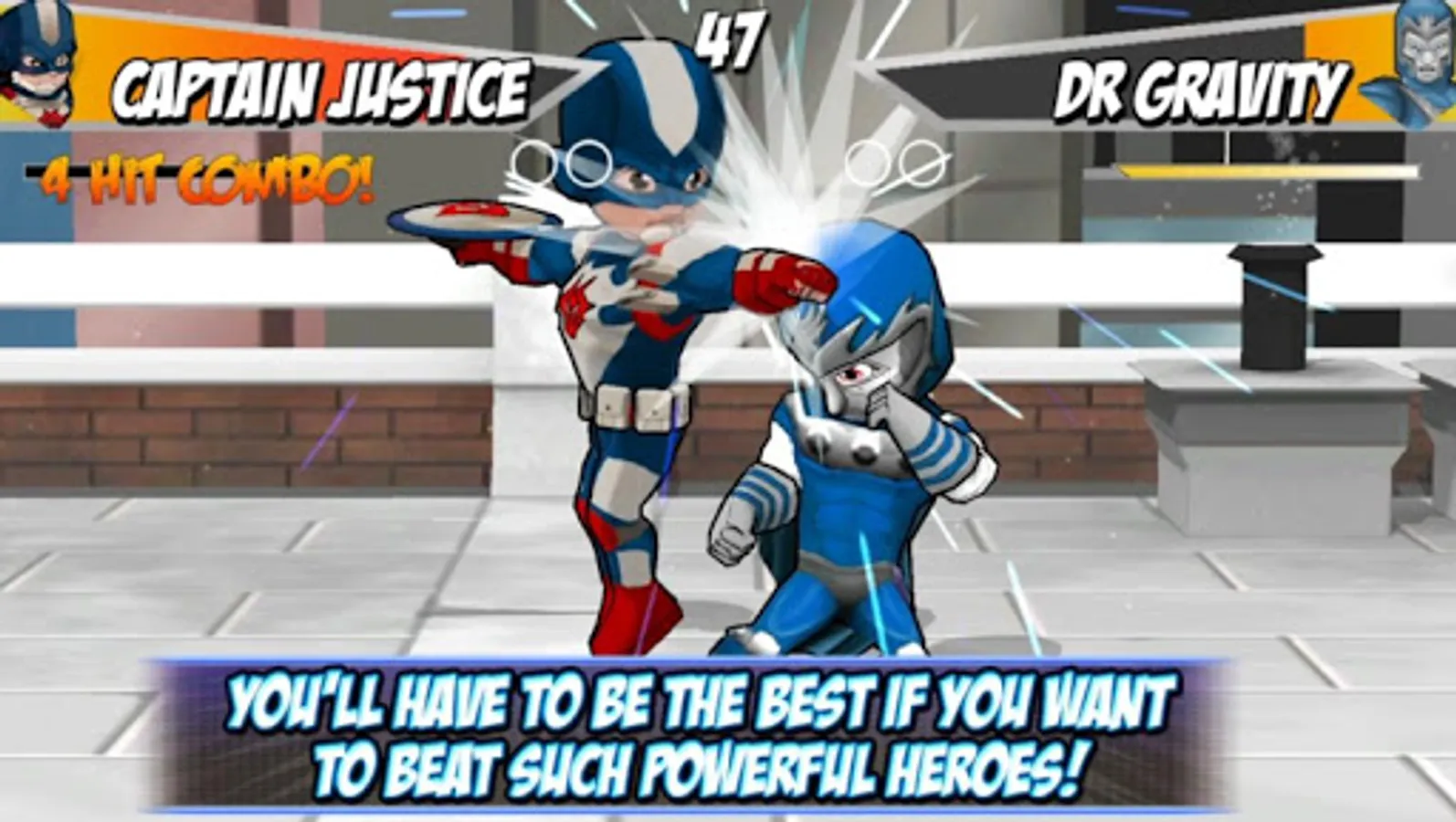 Choose your hero in more than 40 heroes to fight and collect, you can train in training mode and practice lethal combos, last-minute punches and practice street fighting strokes, with its multiple combinations, punches and kicks to stop the forces of evil.