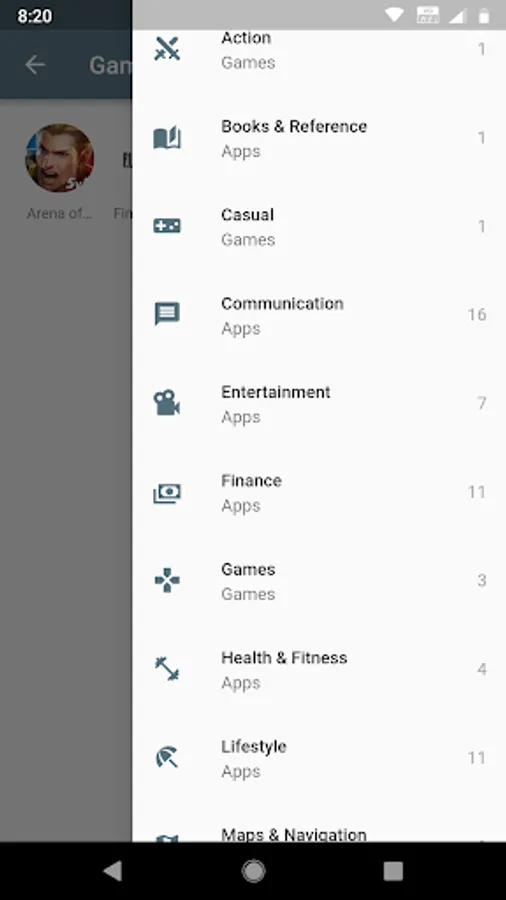 Automatically categorize your apps based on google play categories. You can also manually organize app to your desired category.